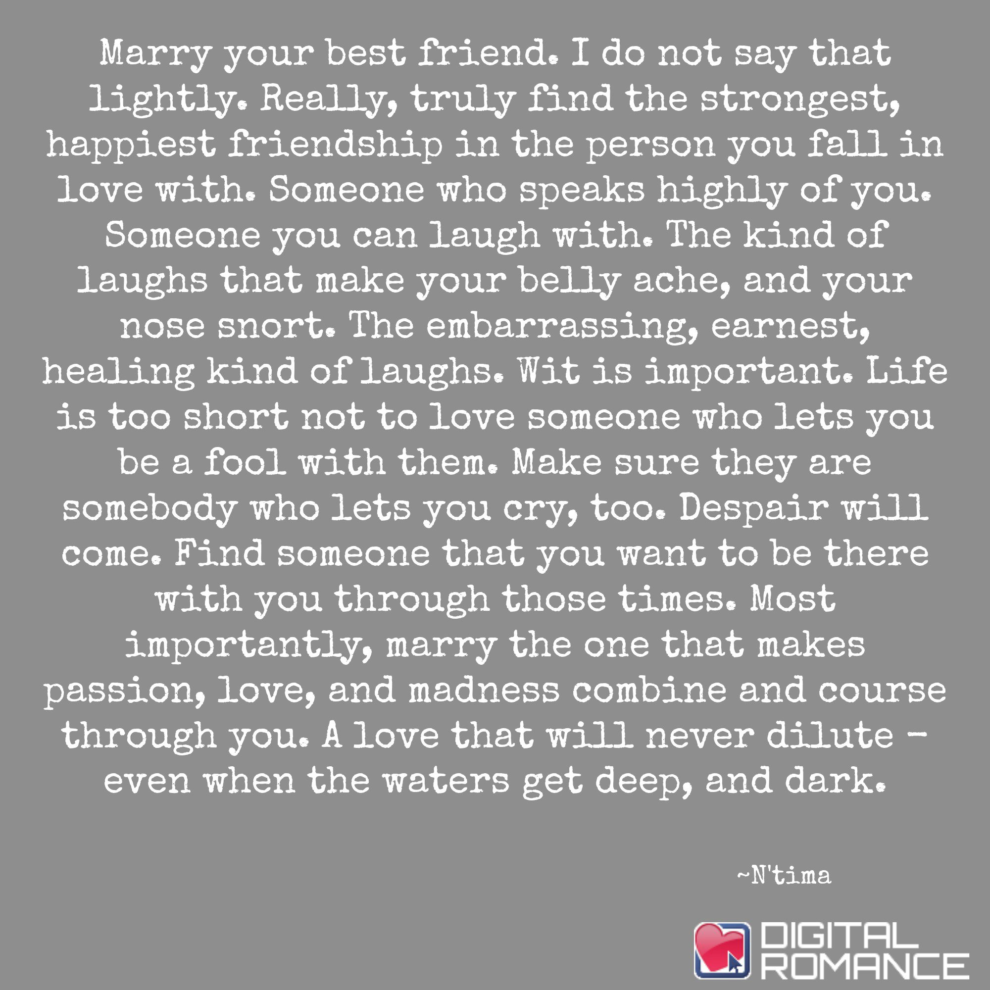 Digital Romance Inc On Twitter Marry Your Best Friend I Do Not Say That Lightly Really Truly Find The Strongest Happiest Friendship In The Person Marriage Advice Https T Co Rt2nk9ei64 Twitter